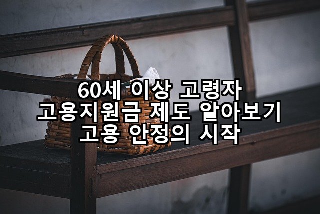 60세 이상 고령자 고용지원금 제도 알아보기 고용 안정의 시작